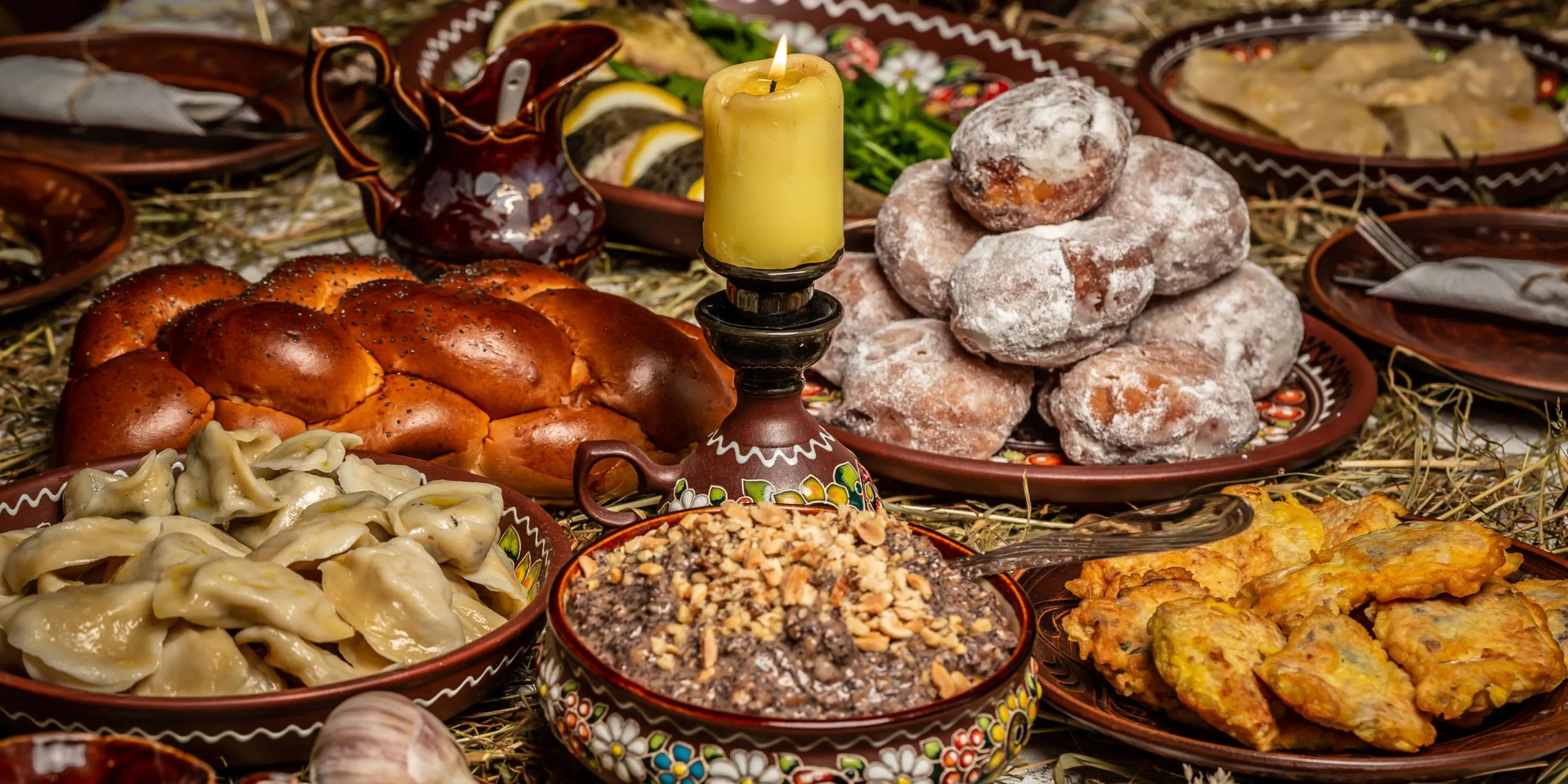 Усі страви на Святвечір мають бути пісними, без м’яса й молочних продуктів. Традиційний перелік може дещо відрізнятися залежно від регіону, але найчастіше на кожному столі є: