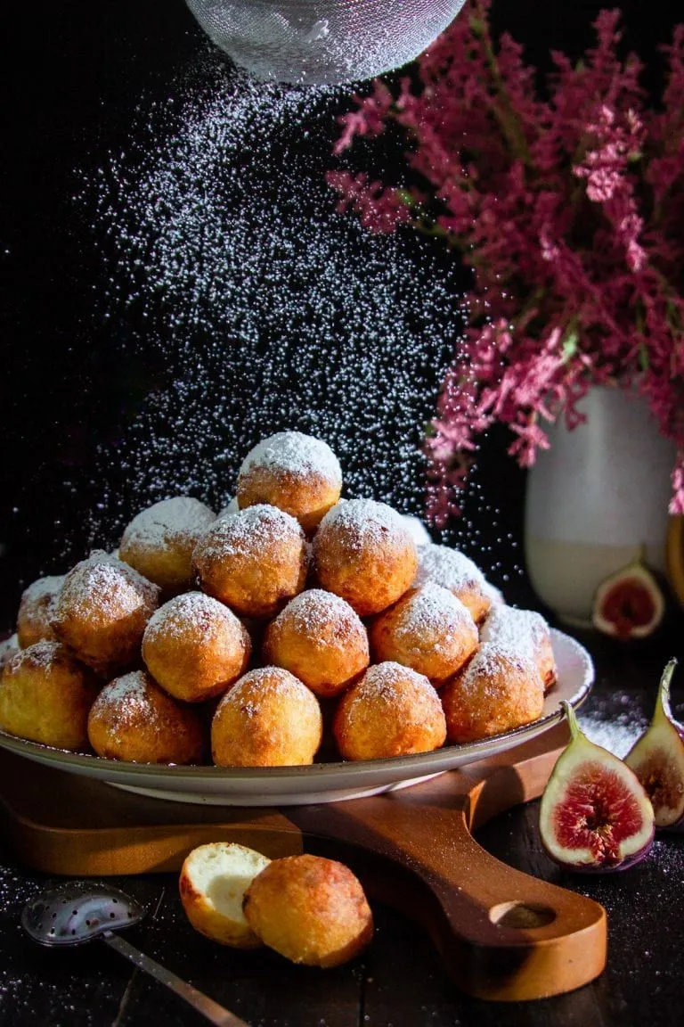 - Посипте сирні пончики цукровою пудрою й подавайте до столу.