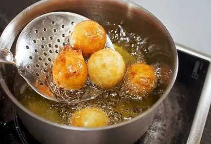 - Обсмажте пончики в киплячій олії до рум'яної скоринки.
