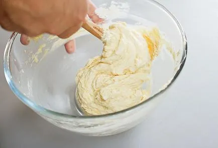 - Змішайте в мисці сир, яйця, борошно, цукор, сіль та соду. Ретельно перемішайте всі інгредієнти.