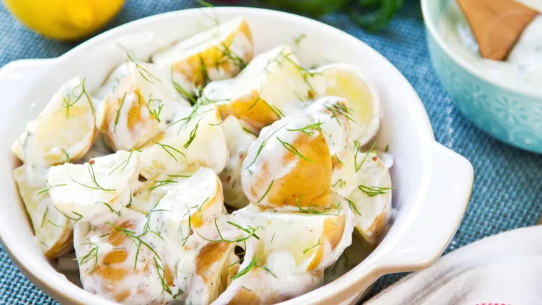 - Почистьте та відваріть молоду картоплю до готовності у підсоленій воді. Потім процідіть і залиште в каструлі.