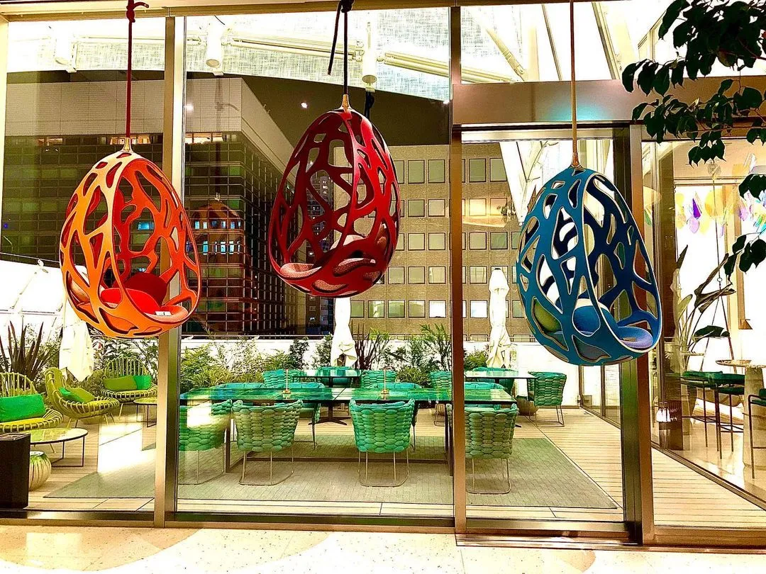 Дизайнери використали деревʼяні підлоги, щоб імітувати палубу корабля, обшиті деревом стовпи і металеві стелі. Ззовні заклад нагадує великий човен з вітрилами.