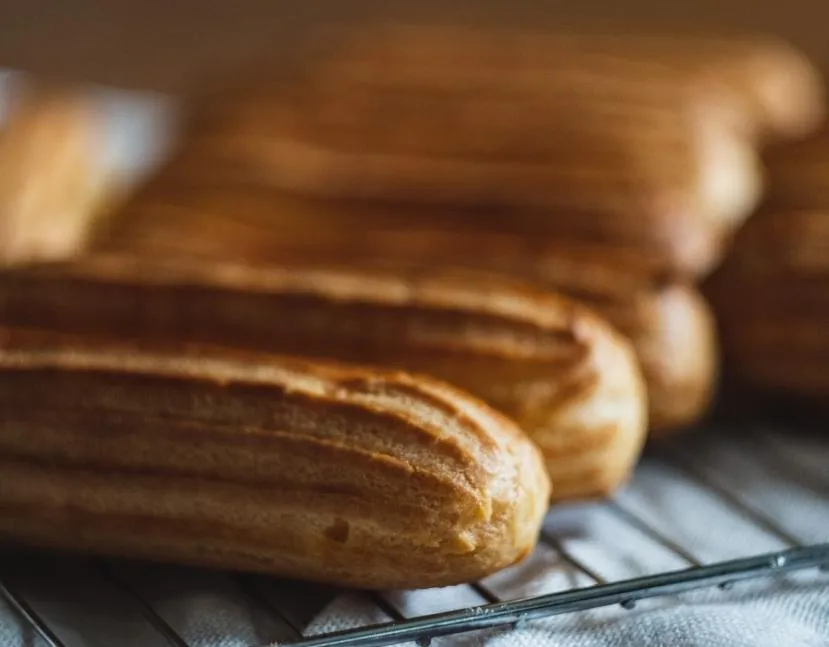 - Відправте випікатись на 25-30 хвилин до готовності. Перші 15 хвилин випікайте при температурі 200 градусів, потім – до 160 градусів і випікайте ще 15 хвилин. Готові еклери дістаньте з духовки, залиште для охолодження.