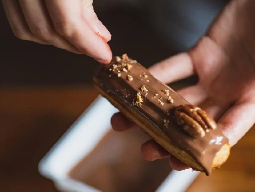 - Викладіть крем у кондитерський мішок, начиніть еклери – зробіть отвір і наповніть кремом.