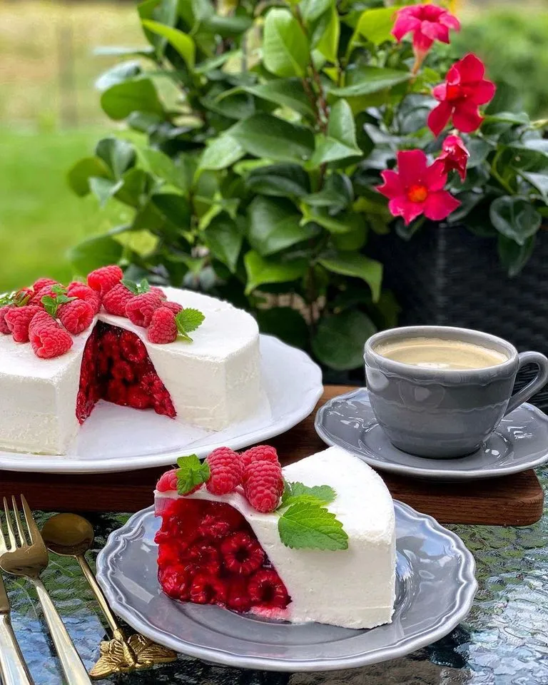 - Готовим малиновое желе согласно инструкции на упаковке. Выливаем его сверху на малину так, чтобы он покрывал ее целиком.