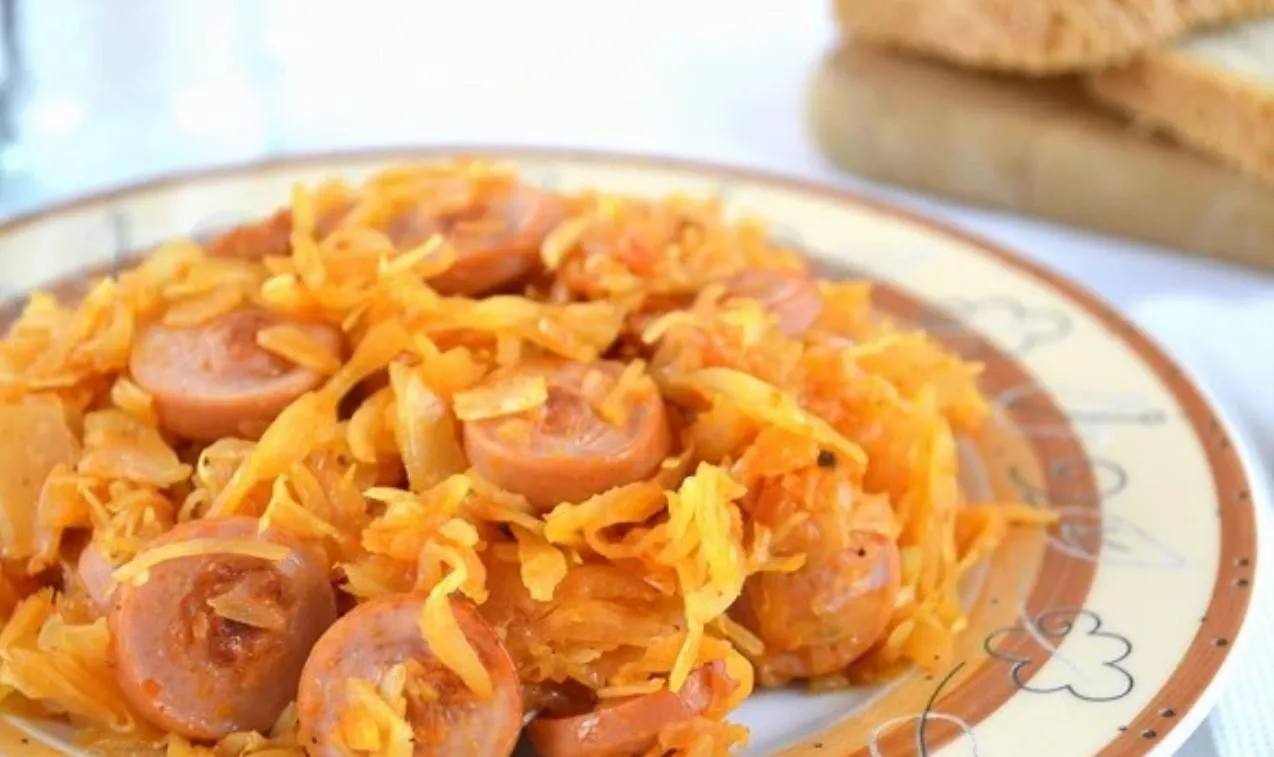 Тушеная квашеная капуста с сосисками