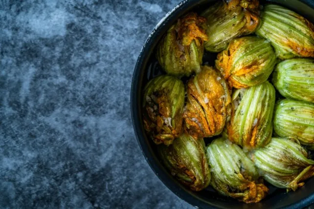 - Опустите цветок в кляр, чтобы он покрыл его весь. Обжаривайте в масле до золотистости с двух сторон по 2 – 3 с каждой стороны.