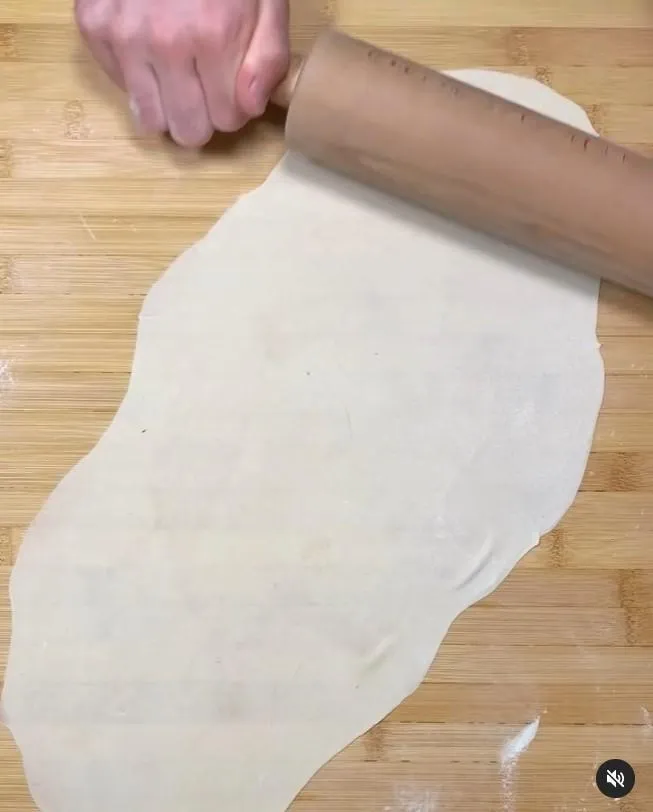 - Отделите от общей массы теста небольшой кусочек и раскатайте его в тонкий пласт.