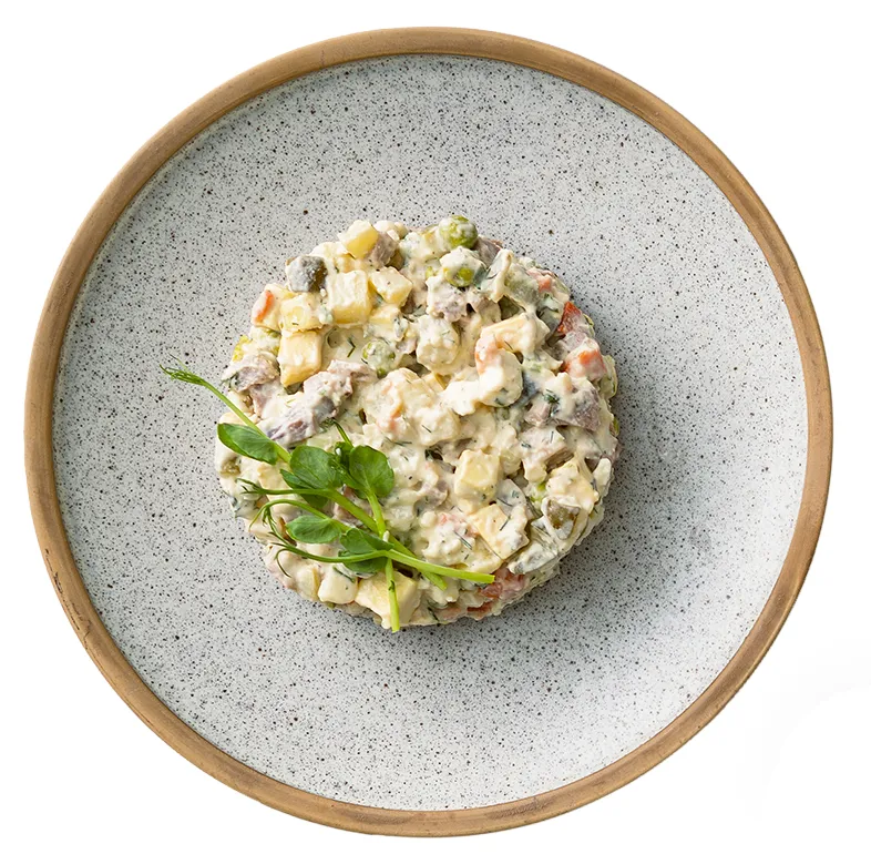 Можете ли вы представить Новый год без оливья? Вряд ли. Однако пришло время попрощаться с устаревшей версией этого блюда. Предлагаем попробовать салат с говяжьим языком, приготовленным по технологии sous-vide ("под вакуумом") в течение 7 часов.