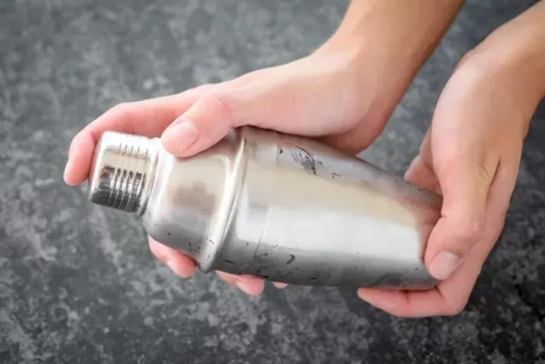 - Взбейте ингредиенты в шейкере. Добавьте кубики льда.