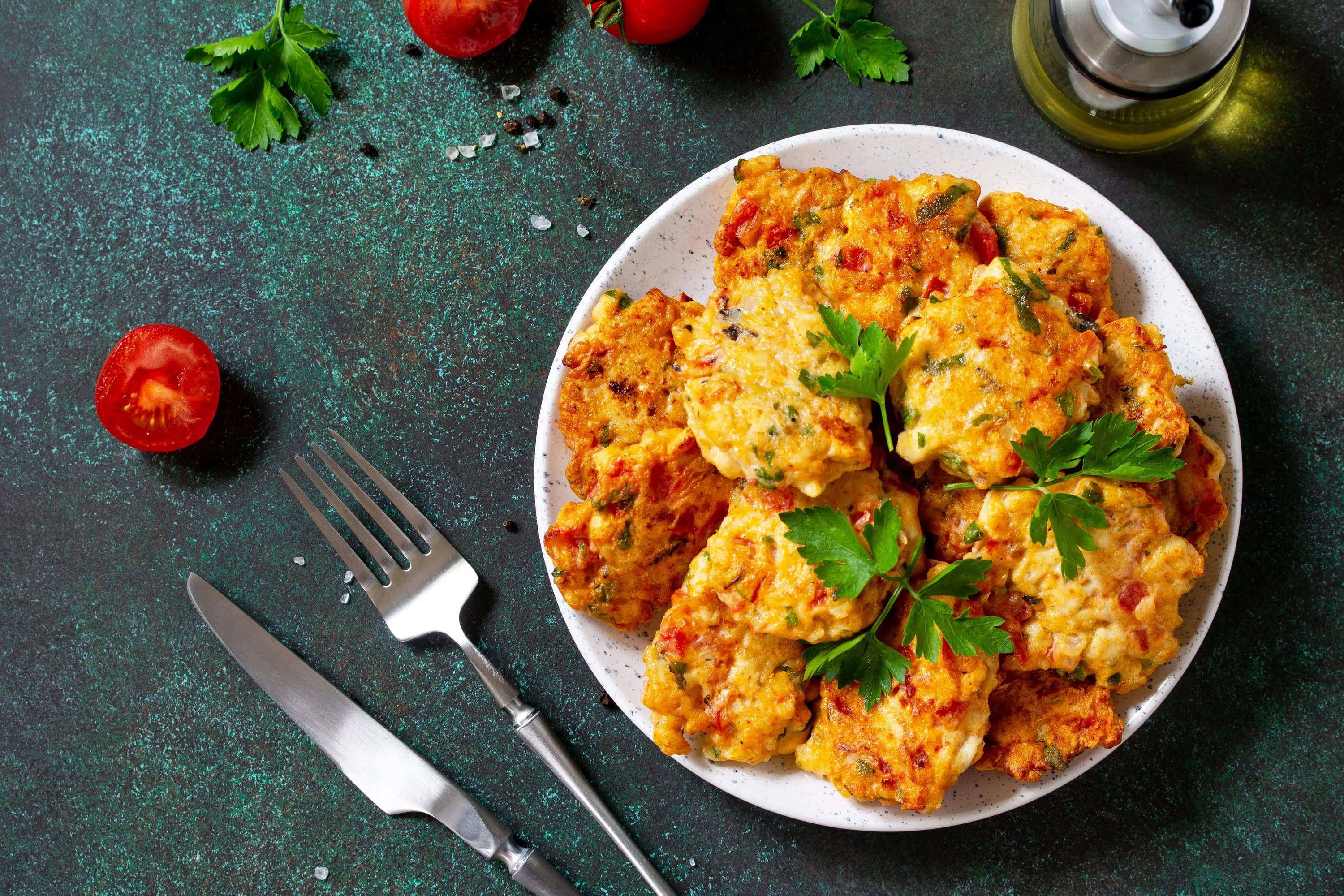 - Взбейте яйца, добавьте петрушку или кинзу и посыпьте мукой. Перемешайте еще раз все ингредиенты до однородной консистенции.
