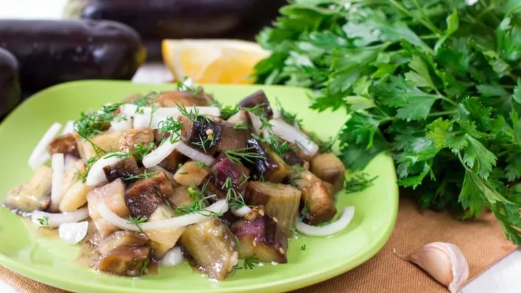 - В миску выложите слоями баклажаны и лук, залейте горячим маринадом. Дайте остыть.
