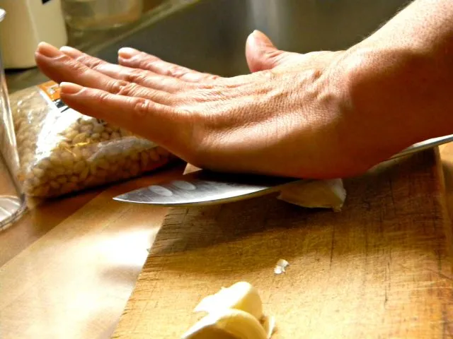 Прижимаем зубчик к доске лезвием, сильно бьем – и готово! Конечно, этот способ требует некоторых тренировок, но овладев им, вы никогда не пожалеете.