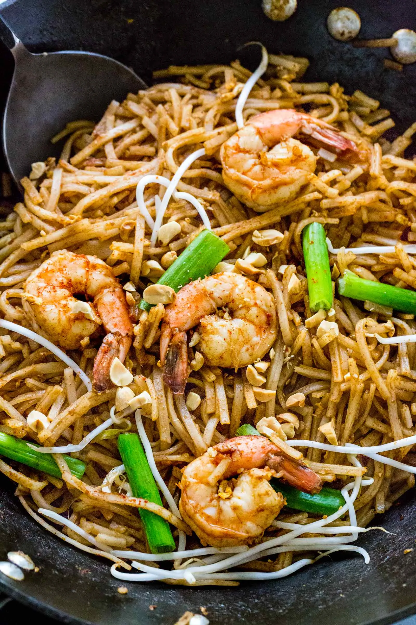- Выключите плиту. Добавьте в пад-тай паприку, зеленый лук и перемешайте.