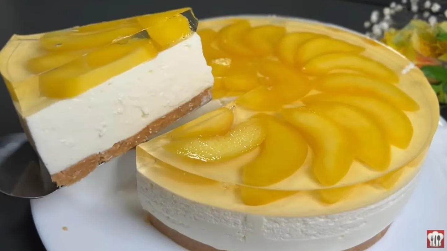 Видеорецепт приготовления персикового торта без выпечки: