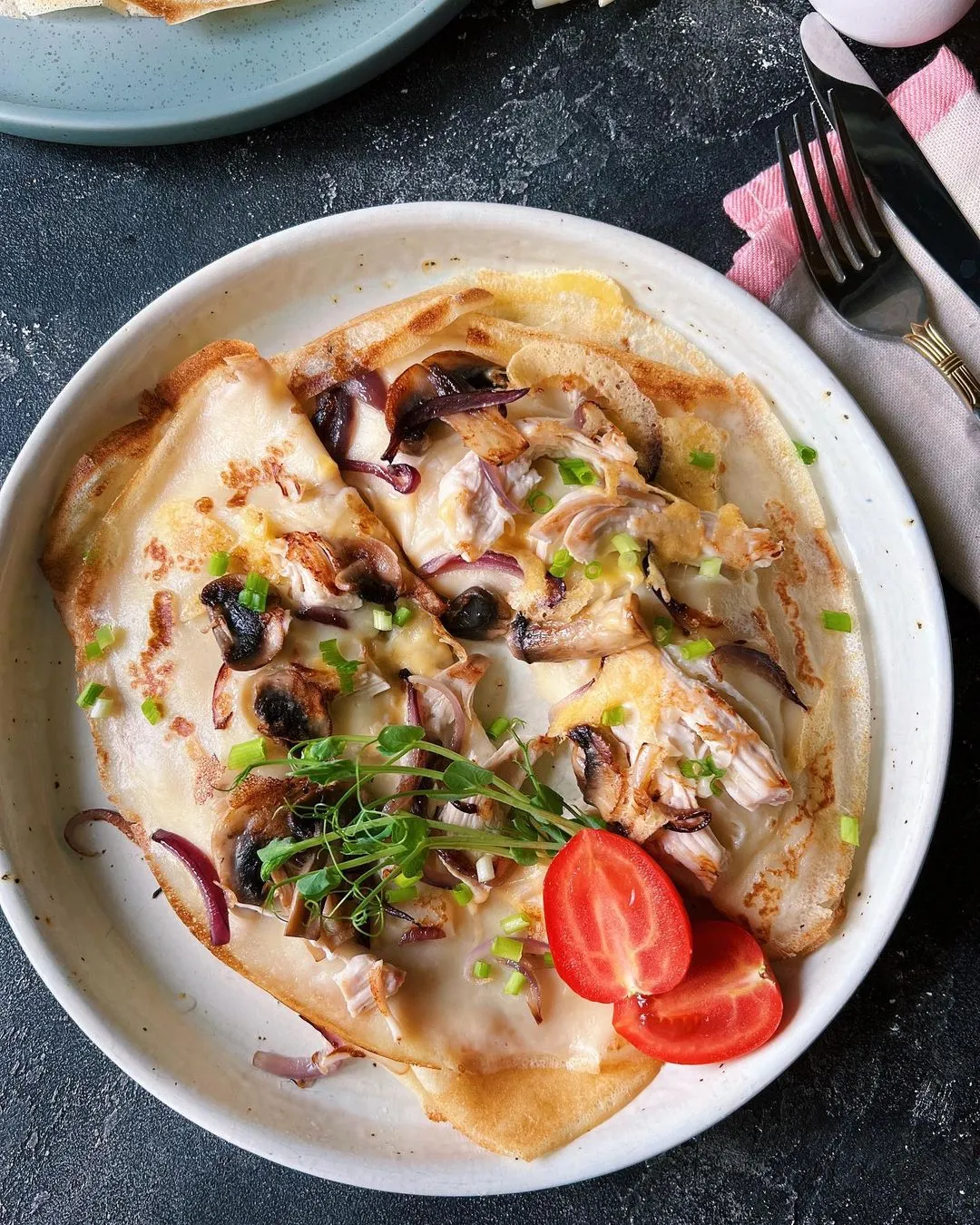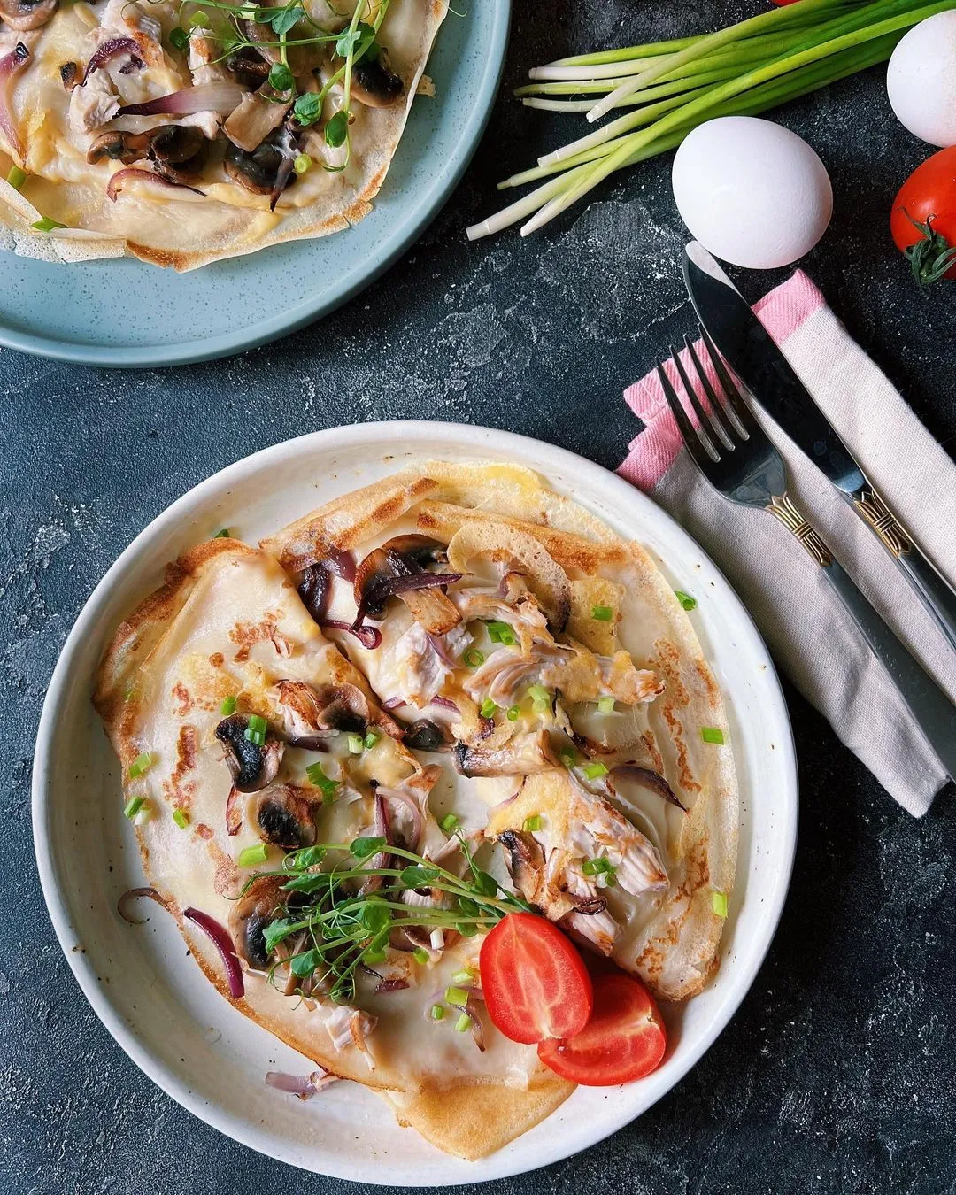 Начинка для них может быть любой: вареная или жареная курица, копченая ветчина или колбаса или сыр и шампиньоны. Шеф-повар Валентина Саенко поделилась с читателями проверенным рецептом блинов, а вот начинку выбрала по своему вкусу: с курицей, грибами и сыром.