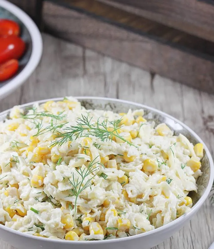 - Все перемешайте и добавьте горсть измельченного укропа. Еще раз перемешайте салат и проверьте его вкус.