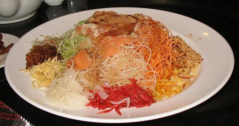 Обычно в этот день готовят традиционное блюдо китайской кухни – салат "Ю-шэн" (Yu Sheng). Салат успеха и благополучия. Тот, кто попробует его во время празднования будет счастливым и успешным в течение всего года.