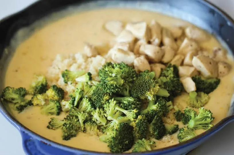 Рецепт сырной запеканки с киноа, курицей и брокколи