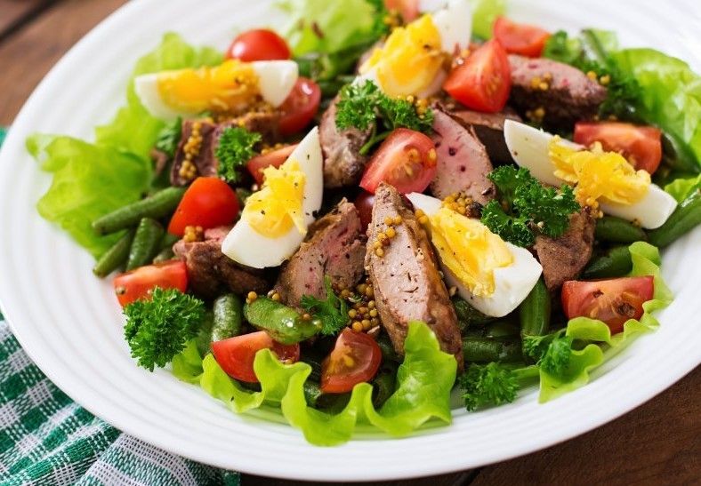 - Готову страву перекладають на тарілку, доповнюють скибочками яйця та коригують пропорції до смаку.