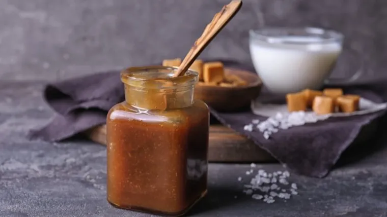 - Додайте половину солі, перемішайте та скуштуйте. Якщо смак влаштовує, зніміть карамель з плити, охолодіть і перелийте у красиву баночку.