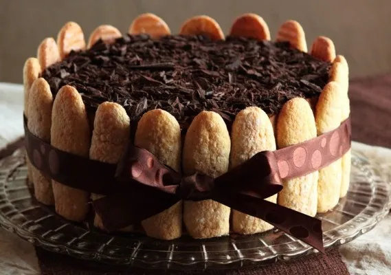 - ️Форму діаметром 21 сантиметрів вкриваємо пергаментом. У 21-го печива підрізаємо кінці і викладаємо по стінці форми. Низ форми також заповнюємо савоярді, їх відразу можна змочити в каві, або ж просто легенько полити зверху.