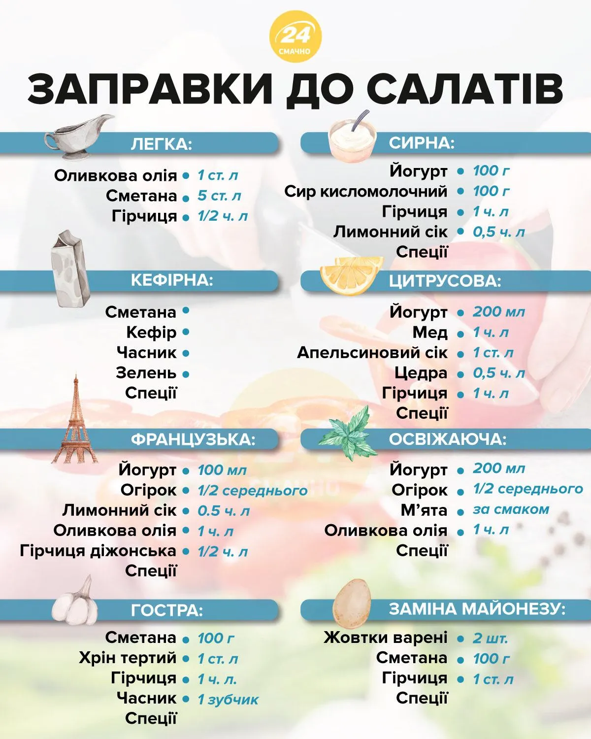 SmachnoNews підготував для вас підбірку корисних та низькокалорійних заправок для салатів на будь-який смак.