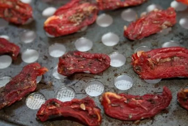 - Перший варіант. Викладіть помідори на деко з дірочками або на силіконовий коврик та відправте сушитися в духовку при 120 градусах. Процес займе 4 – 5 годин.