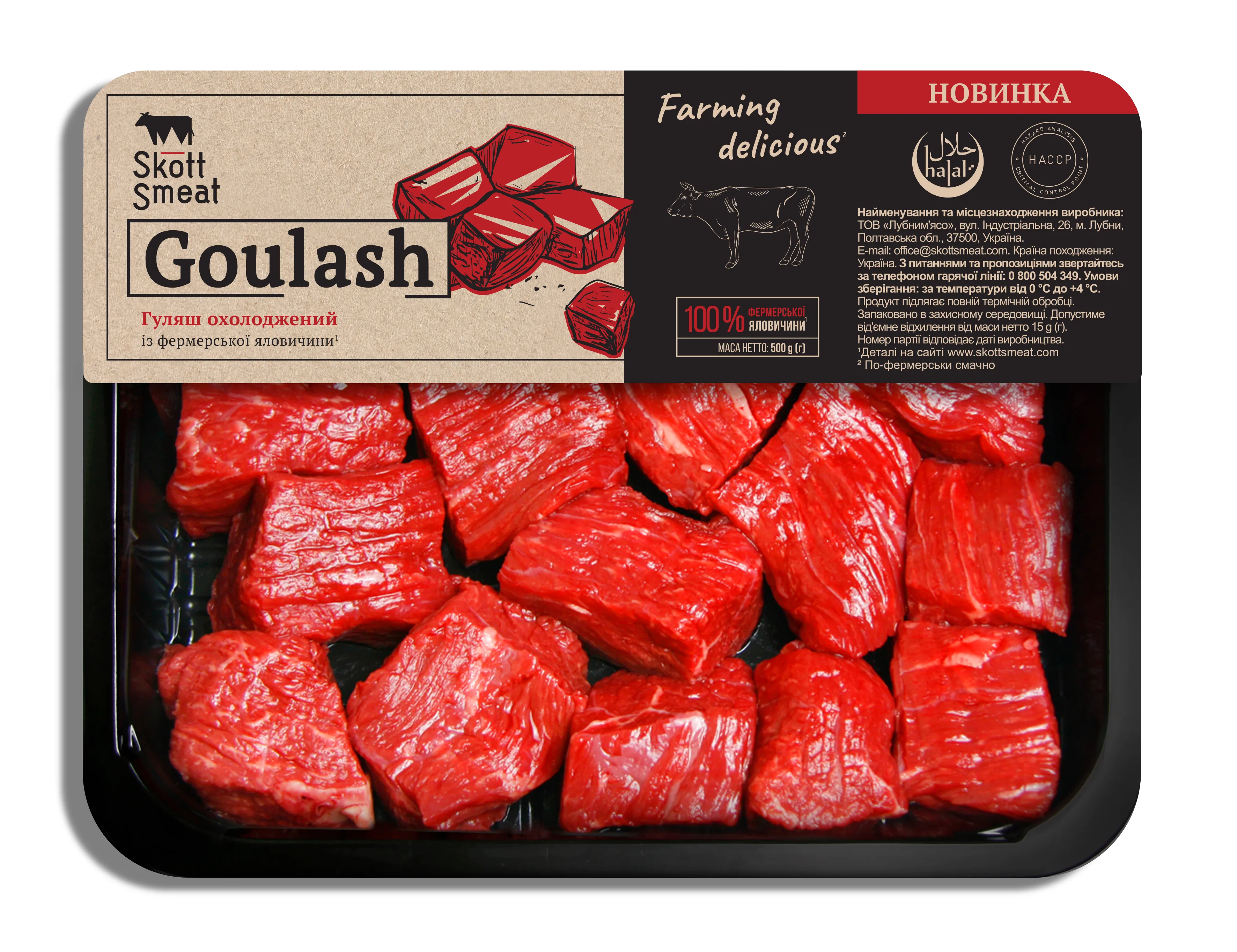 Та якщо вам бракує часу на вибір ідеальної яловичини, радимо спробувати фермерський гуляш від Skott Smeat. Виробник подбав про те, щоб на вашій кухні опинились вже добірні шматочки тазостегнової частини, порізані поперек волокон та очищені від зайвих плівок. Тому зі Skott Smeat можна забути про міф, що страви з яловичини – це складно. Достатньо всього лиш розкрити упаковку та почати приготування.