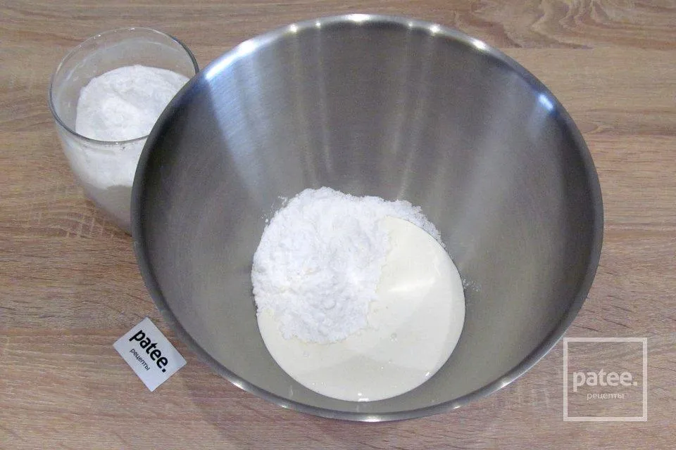 - Перелийте холодні вершки у високий посуд та збийте разом з цукровою пудрою до стійких піків. На це піде близько 10 хвилин.