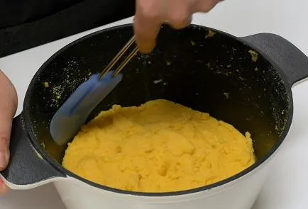- Далі додайте решту борошна та заваріть при постійному перемішуванні.